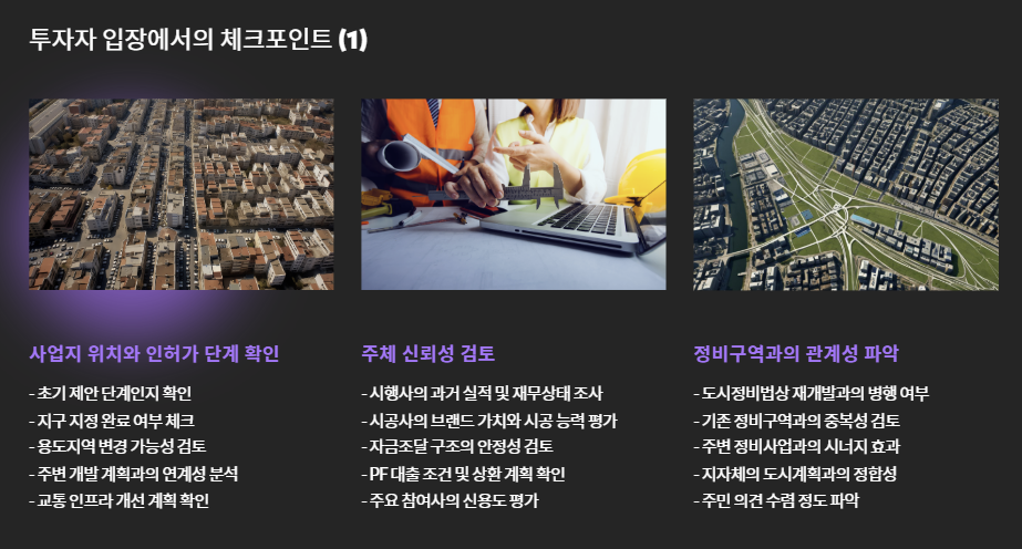 - 초기 제안 단계인지, 지구 지정까지 완료되었는지 반드시 확인