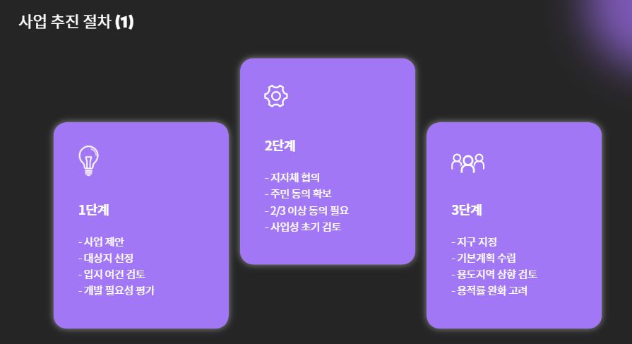 - 민간 사업자가 노후 주거지 중심의 구역을 제안
