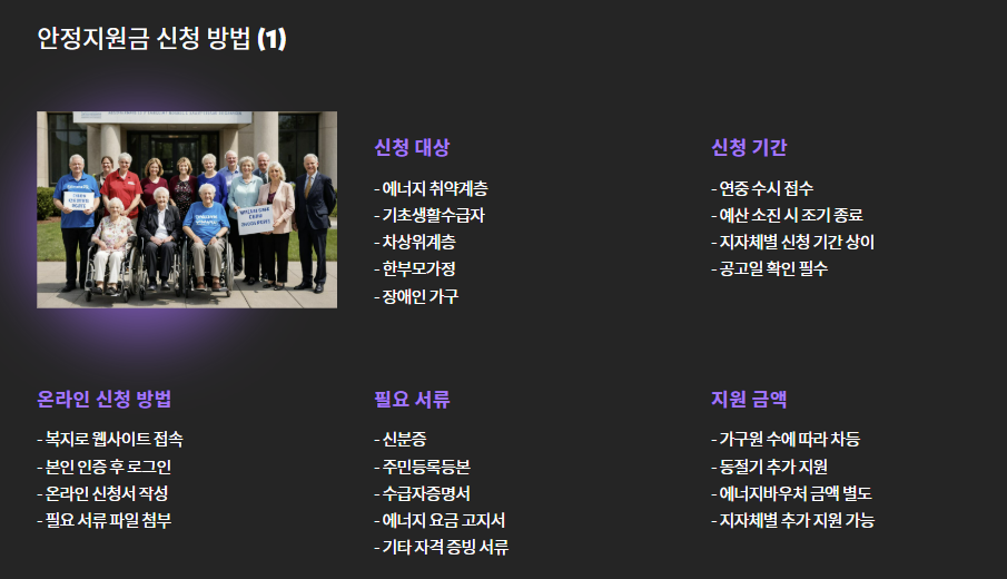 - 에너지바우처와 안정지원금은 별개로 중복 지원 가능한 경우가 많습니다.