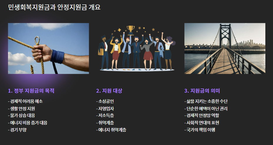 - 안정지원금: 생활비 부담 완화 목적