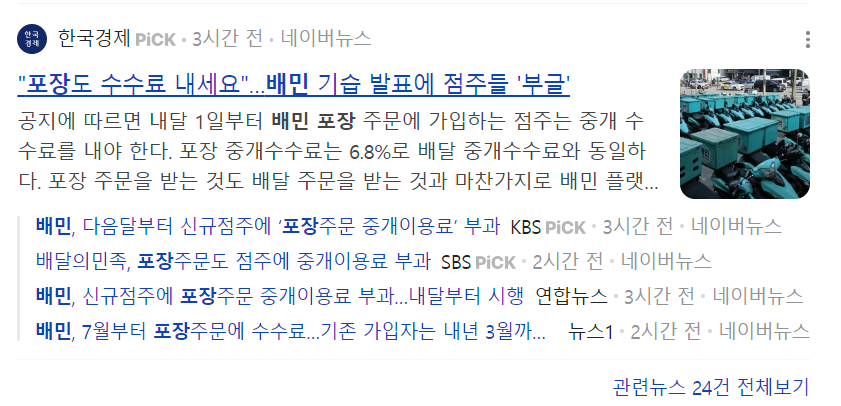 “배달비 아끼려 포장 주문하는 손님들 많은데, 앞으론 포장수수료까지 내야 한다니….” 배달앱 시장 1위 업체인 배달의민족(배민)이 오는 7월1일부터 신규 입점 점주들에게 ‘포장 수수료’를