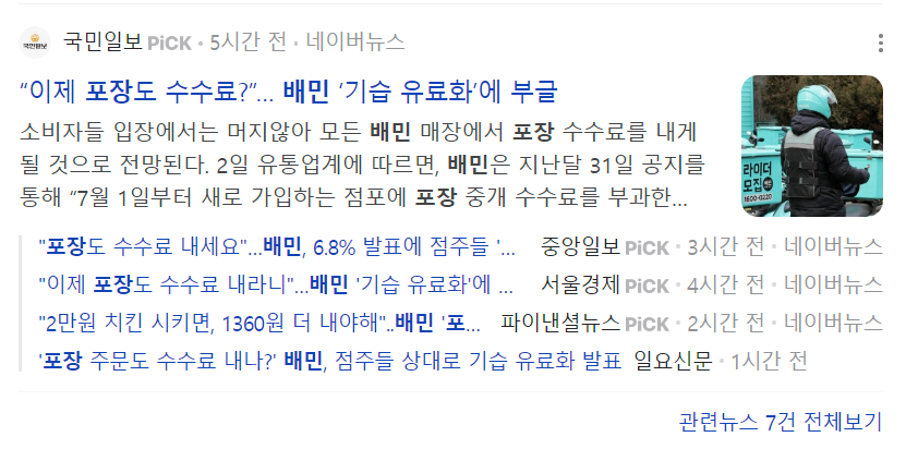 배달비 무료 정책 이후에는 배달비가 상품가에 포함되어 가격이 오르는 결과를 초래했습니다.