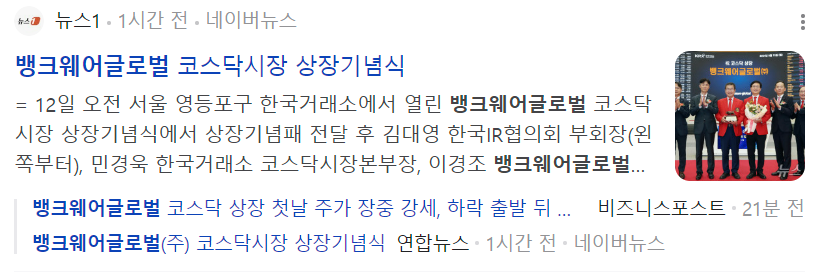 뱅크웨어글로벌, 8월 12일(월) 상장일