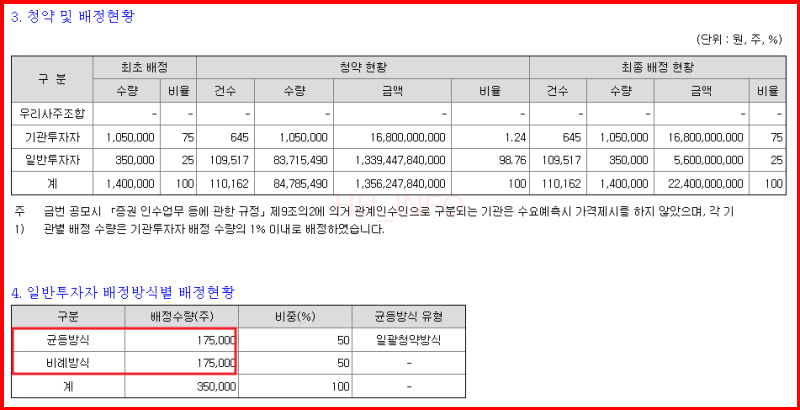 뱅크웨어글로벌의 총 청약 건수는 109,517건이었습니다. 균등 배정으로 1.59주가 배정될 수 있었으므로, 청약에 참여한 모든 분들이 최소 1주를 배정받았고, 추가로 59%의 확률로 1주를 더 배정받은 것으로 보입니다. 저는 이번 청약에 참여하지 않았지만, 상장일 주가 흐름을 지켜볼 계획입니다.