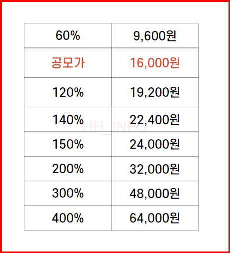 상장 당일, 뱅크웨어글로벌의 주가는 공모가의 60%에서 400%까지 변동할 수 있습니다. 이는 9,600원에서 64,000원까지의 폭을 의미합니다. 최근 공모주 시장이 다소 냉랭한 분위기라, 주가가 큰 폭으로 상승할 가능성은 낮아 보이지만, 세부적으로 주가 변동 폭을 나눠 보면 20% 상승 시 19,200원, 40% 상승 시 22,400원이 됩니다. 청약 수수료가 2,000원이기 때문에, 수수료를 포함해도 이익을 보려면 적어도 이 정도 상승이 필요합니다.