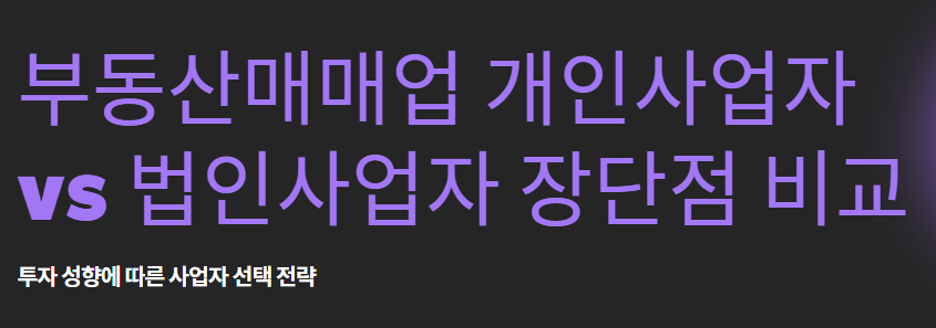 부동산매매업 개인사업자 vs 법인사업자 장단점 비교