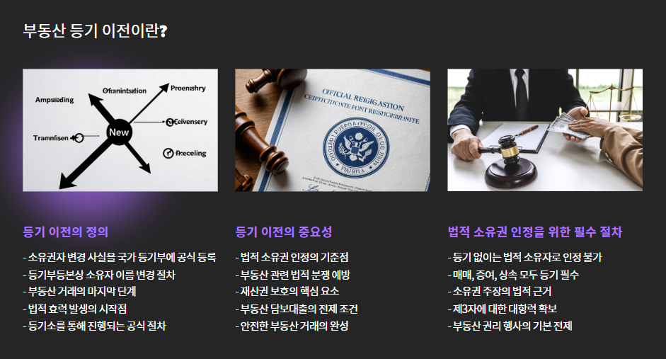 소유권자가 바뀐 사실을 국가 등기부에 공식적으로 등록하는 절차