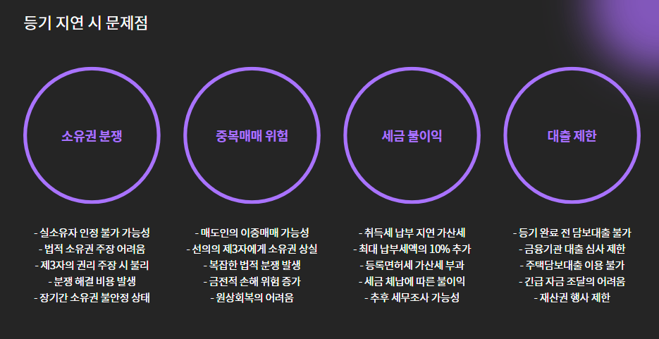 | 세금 불이익 | 취득세 납부 지연 → 가산세 |