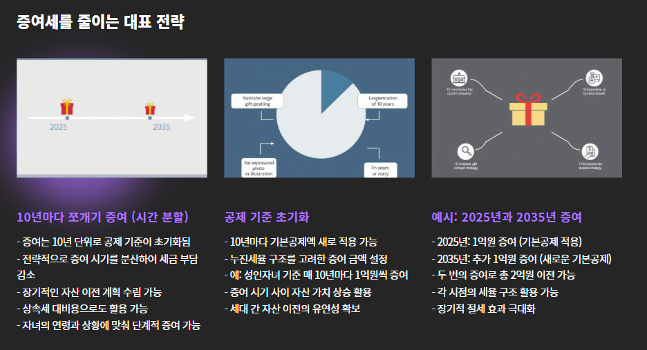 예: 2025년에 1억 증여 → 2035년까지 추가 증여는 누진 합산