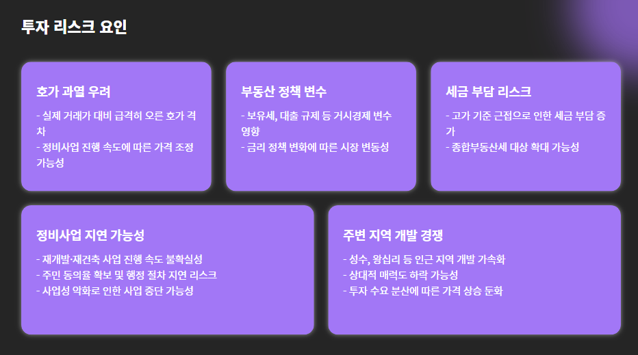 - 2024년 이후 재정비 촉진지구 지정 가능성 언급되며 매물 회수 + 호가 상승 현상 심화