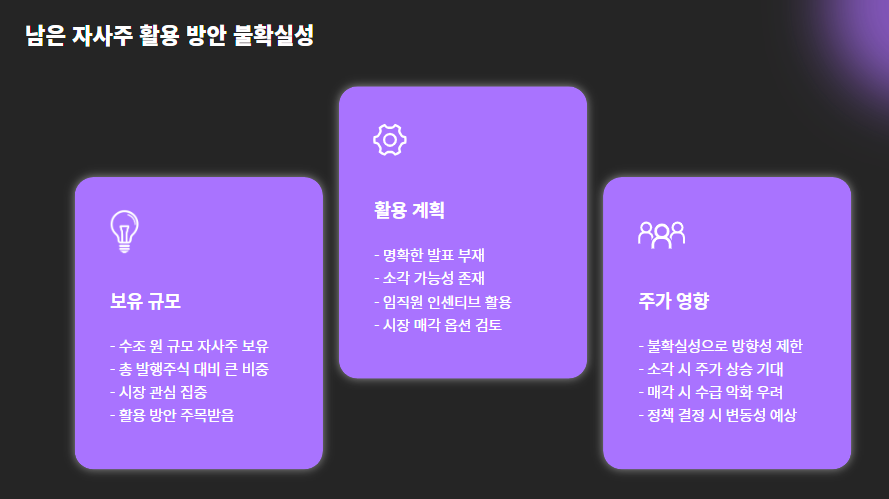 하지만 이 자사주를 추후 어떤 방식으로 활용할 것인지에 대해서는 명확한 발표가 없는 상태입니다.