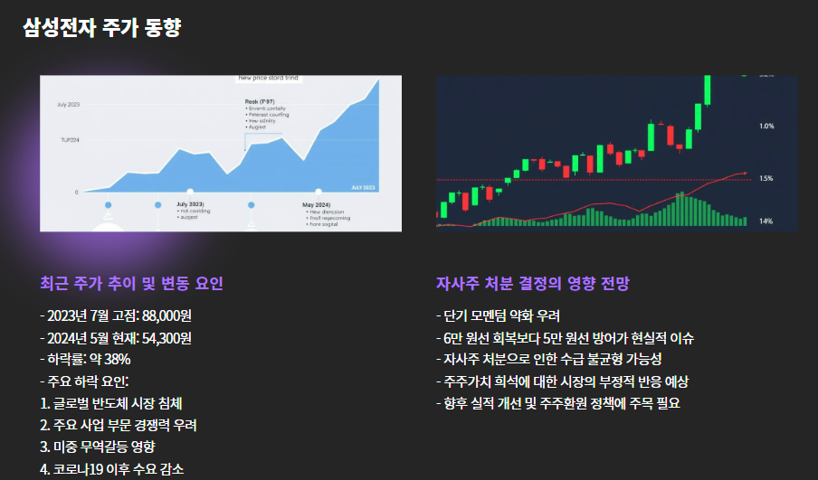삼성전자 주가는 2023년 고점 대비 40% 가까이 하락한 상황이며, 6만 원선의 회복 여부보다 5만 원선 방어가 더 현실적인 이슈가 된 상태입니다.
