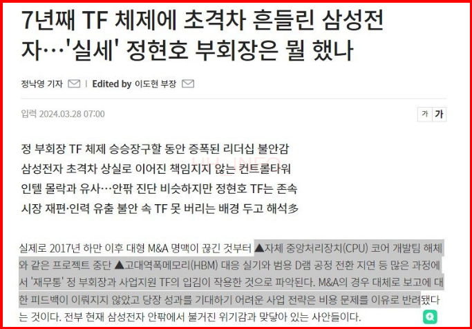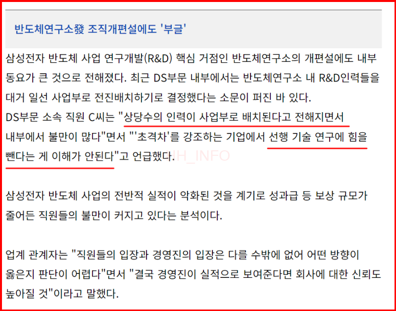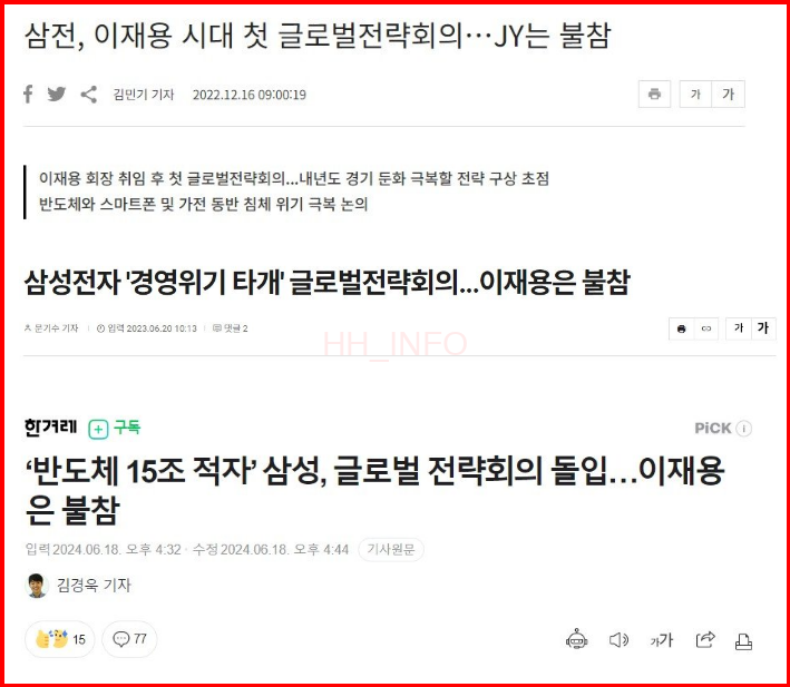 이재용 회장이 글로벌 전략회의에 매년 불참하고 있다는 점도 내부적으로 문제로 지적되고 있습니다. 삼성전자는 선행기술 연구에 소홀해졌다는 비판을 받고 있으며, 조직 개편 과정에서 직원들의 불만이 커지고 있습니다.