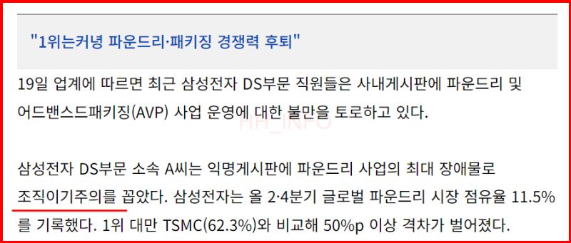 삼성전자의 사내 게시판에 올라온 직원들의 불만을 보면 조직 이기주의와 경영진과의 갈등이 심화되고 있습니다. 이러한 내부적인 문제는 삼성전자의 연구개발과 경영 전반에 악영향을 미치고 있으며, 이는 장기적으로 기업의 경쟁력을 약화시킬 수 있습니다.