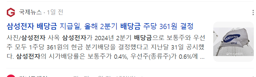삼성전자 배당금 지급일, 올해 2분기 배당금 주당 361원 결정 - 국제뉴스