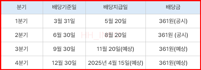 삼성전자의 2024년 2분기 배당금은 8월 20일(화)에 지급되었습니다. 보통주와 우선주 모두 주당 361원의 배당금이 지급되었으며, 보통주와 우선주의 배당률은 각각 0.4%와 0.6%입니다. 삼성전자 배당금은 연 4회 분기별로 지급되며, 3분기와 4분기의 배당금 지급 예정일은 각각 11월 20일과 2025년 4월 15일입니다. 배당기준일을 잘 확인하여 추가 매수를 계획하시는 것이 중요합니다.
