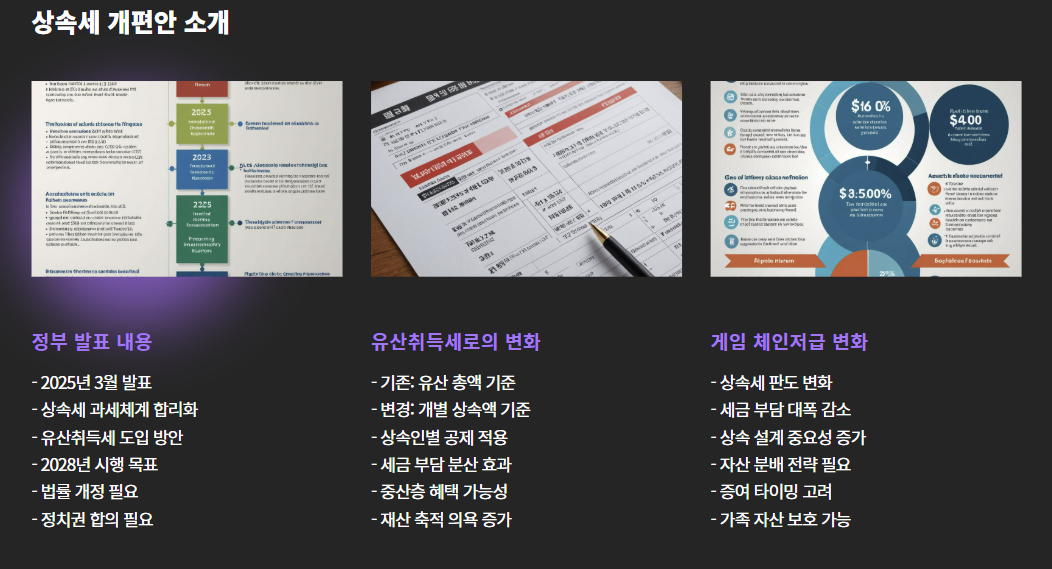 2025년 3월, 정부는 "상속세 과세체계 합리화를 위한 유산취득세 도입방안"을 발표했습니다.
