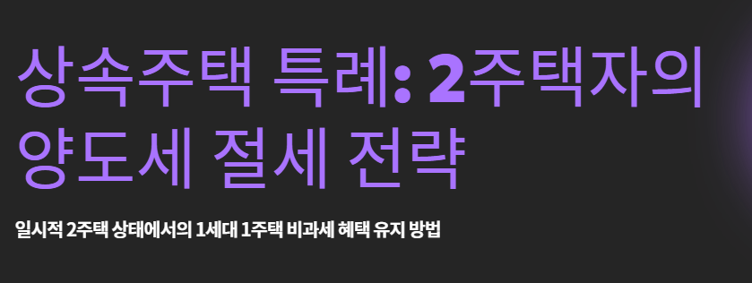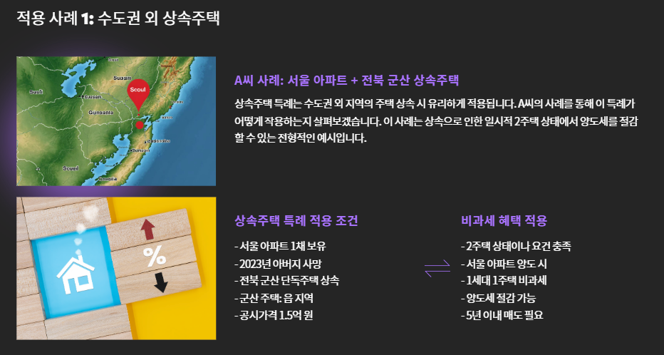 📌 상속주택 특례는 이 '예외 인정'의 대표적인 사례입니다.