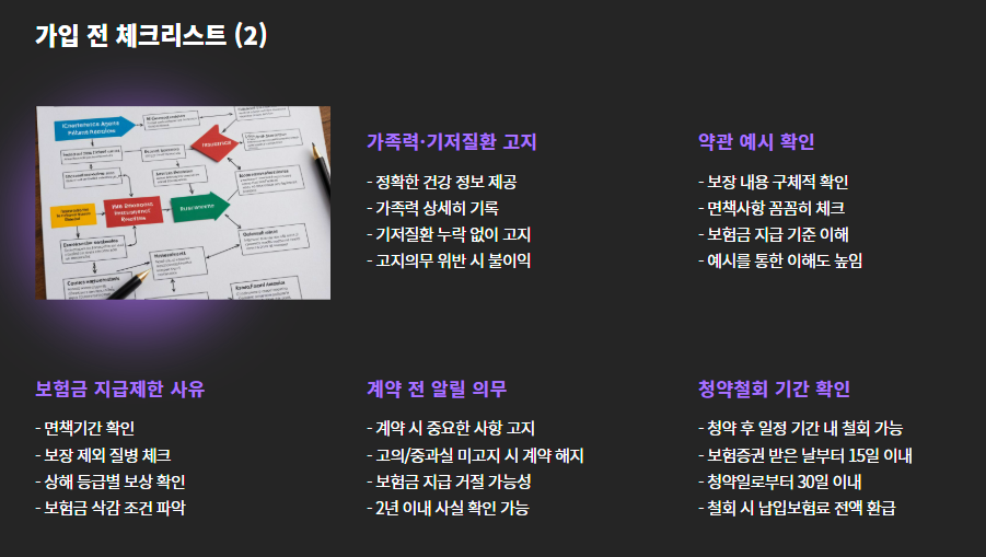 | 가족력·기저질환 여부 고지 | 고지의무 위반 시 향후 보험금 지급 거절 가능 |