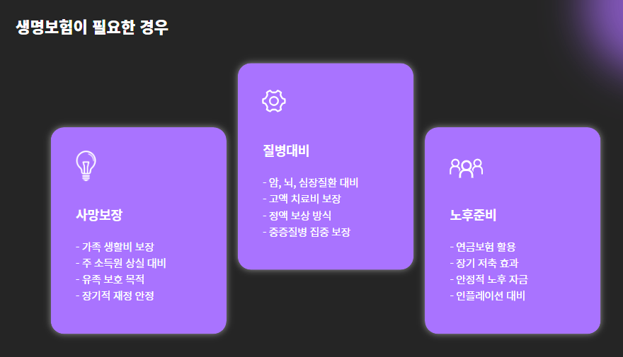 - 가족을 위한 사망보장이 필요할 때 (가장 역할을 하는 경우)