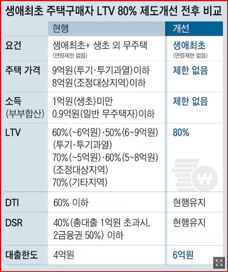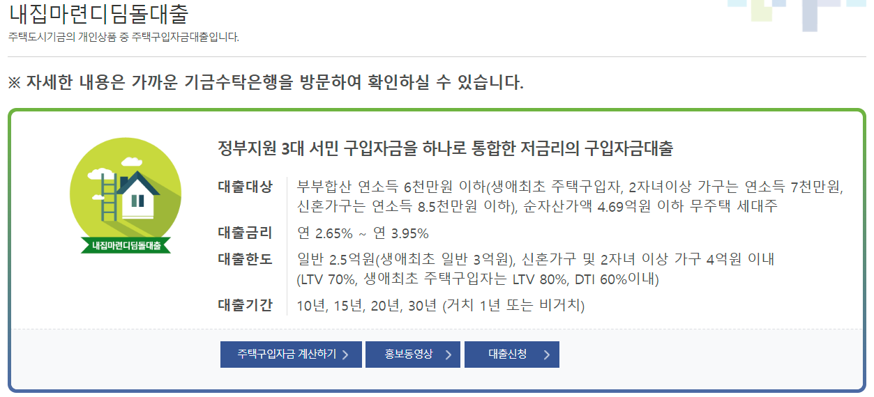 - 대출 한도: LTV 80% 적용이 가능하지만, 최대 한도는 6억 원입니다. 또한, DSR(총부채원리금상환비율), DTI(총부채상환비율) 등이 함께 적용될 경우 대출 한도가 줄어들 수 있습니다.