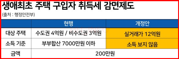 - 감면 대상: 생애 처음으로 주택을 취득한 경우, 실거래가(취득가액) 12억 원 이하 주택에 대해 소득에 상관없이 누구나 최대 200만 원까지 취득세 감면을 받을 수 있습니다.