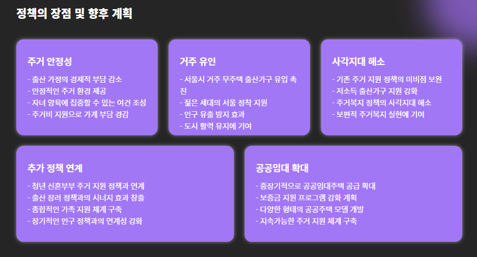 서울시는 이 정책을 시작으로 추가 출산 장려 정책 및 청년 신혼부부 주거 지원 정책도 연계해 나갈 예정이라고 밝혔습니다.