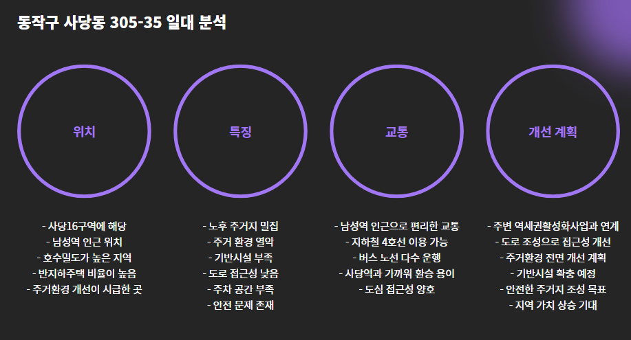 | 동작구 | 사당동 305-35 | 호수밀도 높고 교통 좋음 |
