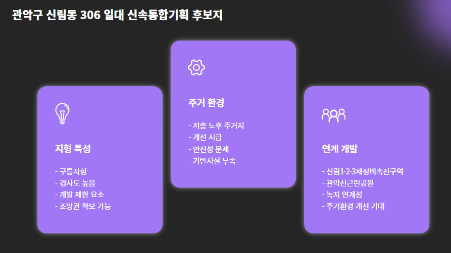 | 관악구 | 신림동 306 | 경사지형, 정주환경 열악 |