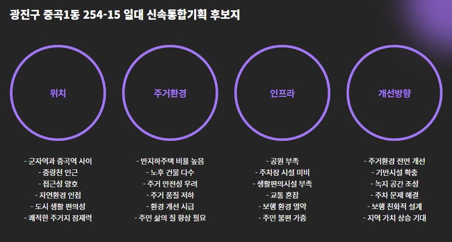 | 광진구 | 중곡1동 254-15 | 군자역 인근, 인프라 부족 |