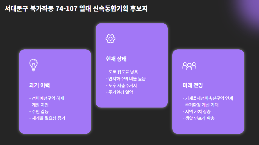 | 서대문구 | 북가좌동 74-107 | 반지하 많고 도로 협소 |