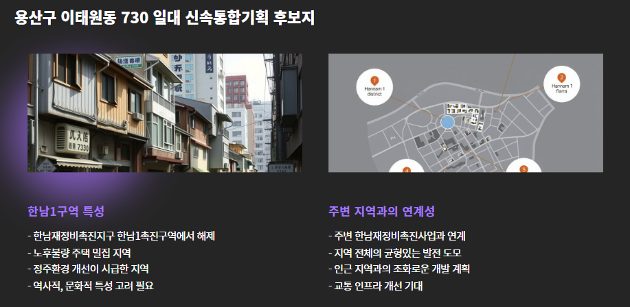 | 용산구 | 이태원동 730 | 한남1구역, 정비촉진 해제지역 |