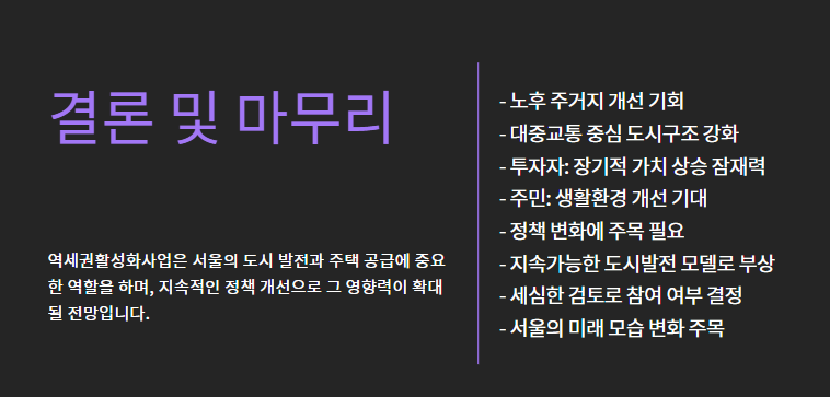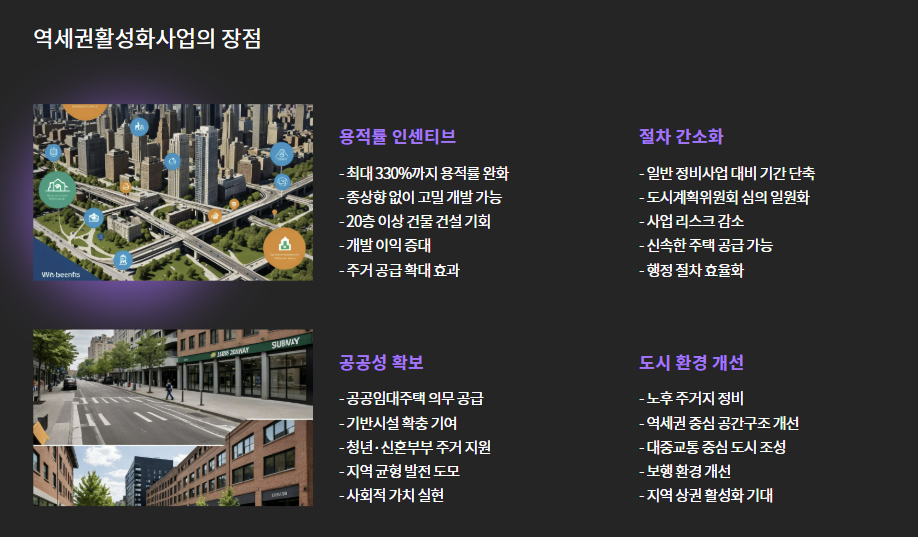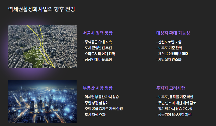 - 재개발을 통한 주택공급 확대와 도시 환경 개선을 동시에 노린