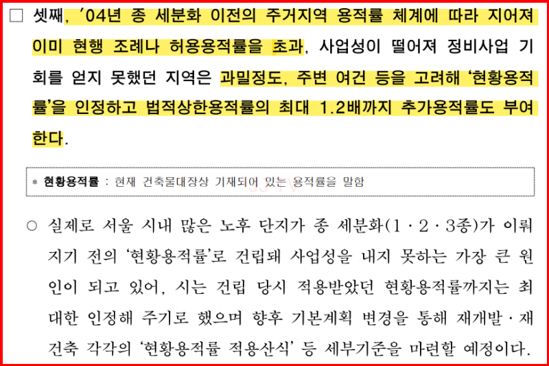 또한, 현황용적률을 인정하여 과거 규정에 따라 지어진 주택도 사업성이 인정될 수 있습니다.