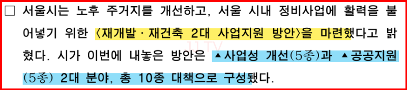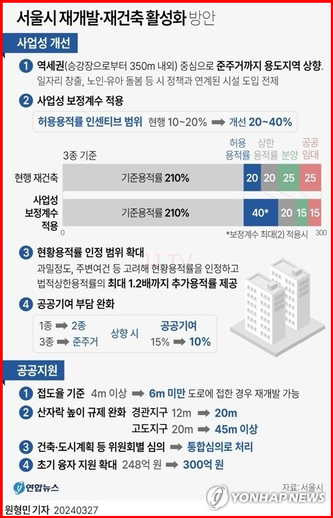 이처럼 서울시는 재건축과 재개발 사업을 통해 주거 환경을 개선하고 도시 발전을 촉진하기 위한 다양한 지원 방안을 마련하고 있습니다.