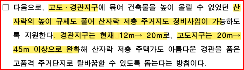 산자락 주거지의 건축 규제가 완화되어 주택의 높이가 상승합니다.
