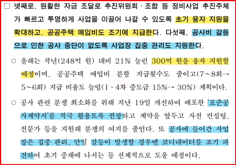 재개발 과정에서 발생할 수 있는 자금 문제를 해결하기 위해 금융 지원을 확대합니다.