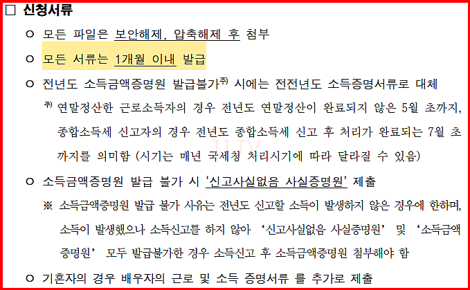 근로청년의 경우에는 현재 근로 중이어야 하며, 최소 1개월 이상의 급여명세서를 첨부해야 합니다. 취업준비생의 경우에는 현재 근로 중이 아니어도 과거 근로기간이 1년(365일) 이상이거나 부모 연소득이 7천만원 이하여야 합니다.