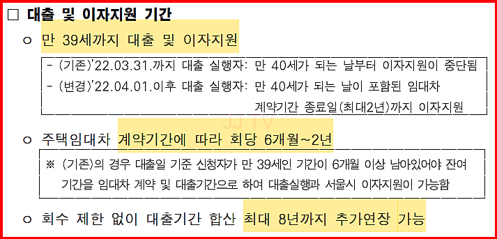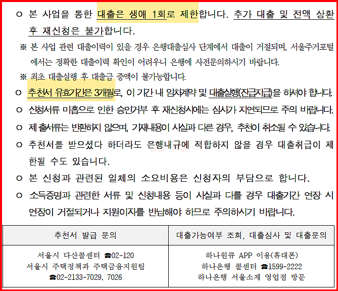 - 생애 1회만 신청 가능하며, 계약 연장은 가능하지만 추가 대출이 불가능합니다.