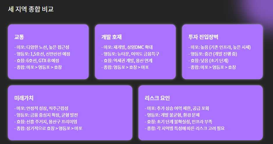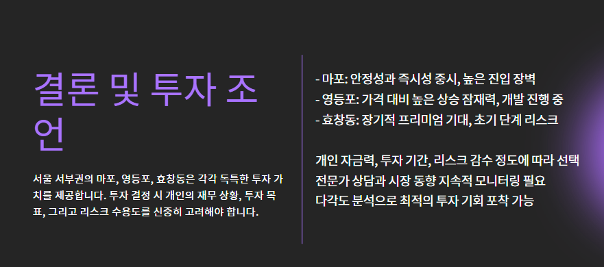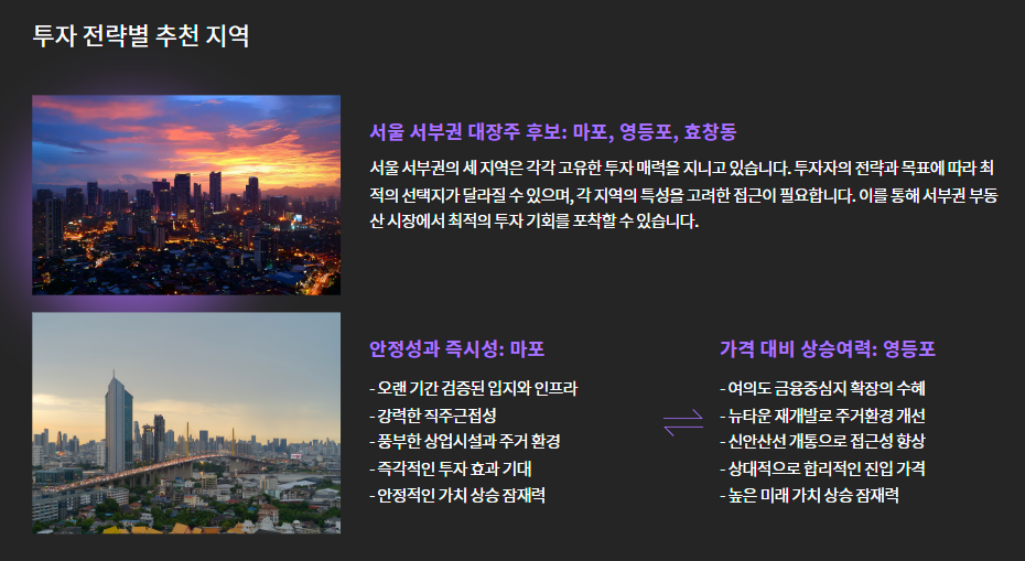 마포, 영등포, 효창동 모두 저마다 강점을 갖고 있지만, 투자 전략에 따라 선택지가 달라질 수 있습니다.