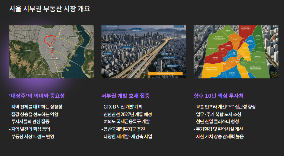 서울 부동산 시장에서 ‘대장주’는 단순히 집값을 넘어, 지역 전체를 대표하는 상징성을 의미합니다. 특히 서부권은 개발 호재가 집중되며 향후 10년을 좌우할 핵심 투자처로 부각되고 있습니다. 오늘은 마포, 영등포, 효창동 세 지역을 중심으로, 누가 진정한 서부권 대장주가 될지 꼼꼼히 분석해보겠습니다.