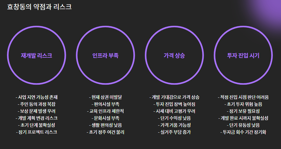 - 현재 재개발 초기 단계로 사업 지연 리스크 존재