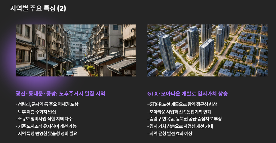 🏗️ ② 광진·동대문·중랑: ‘노후주거지 밀집 + 교통 개선 기대’