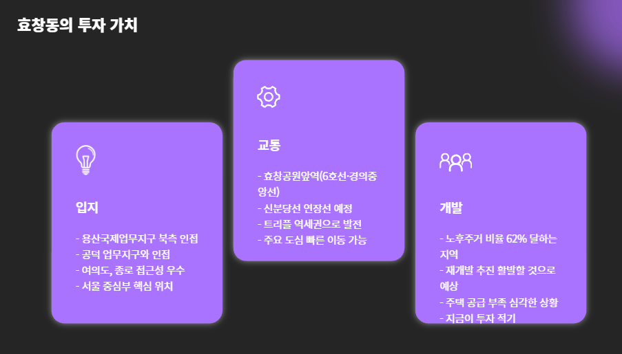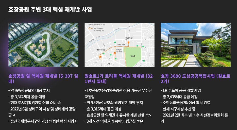 이런 용산 개발의 직격 수혜지가 바로 **‘효창동’**입니다.