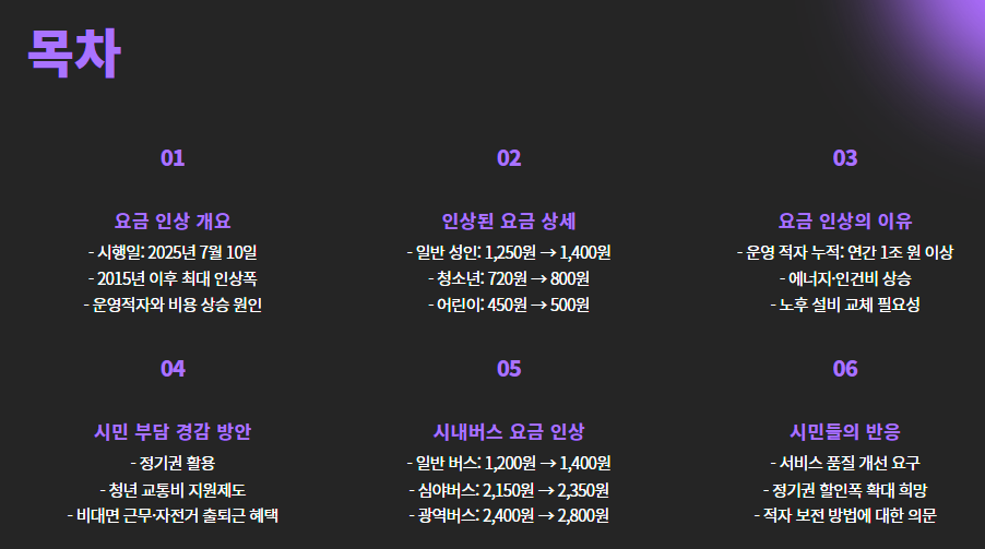 이번 인상은 2015년 이후 가장 큰 폭의 요금 변화로 평가되며, 대중교통을 자주 이용하는 시민들에게 실질적 부담으로 다가오고 있습니다.