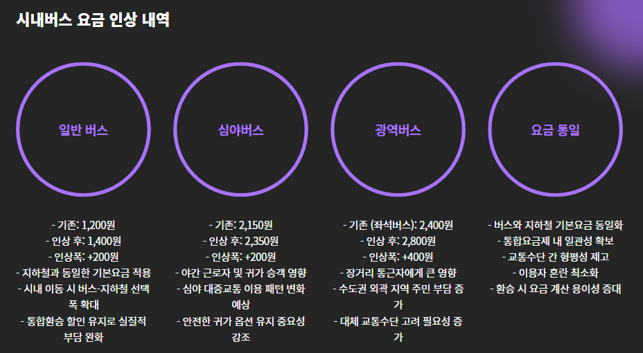 - 일반 시내버스 요금: 1,200원 → 1,400원 (+200원)