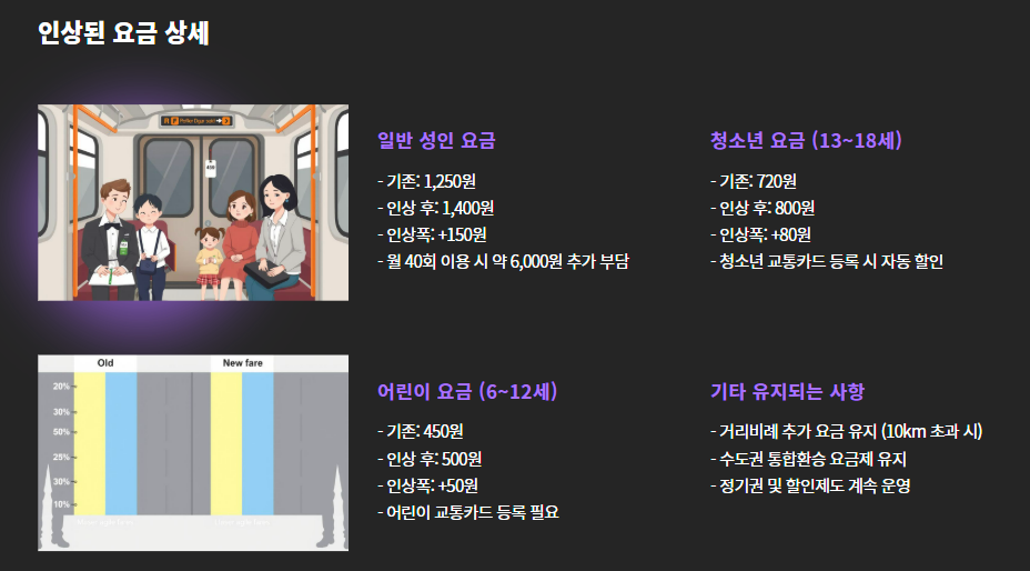 1. 2025년 서울 지하철 요금 인상 내용 요약