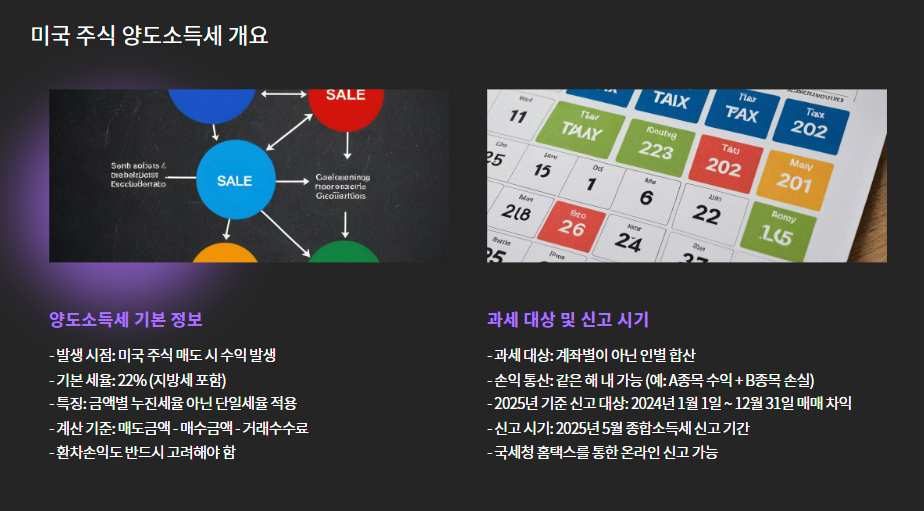 미국 주식 투자에는 크게 두 가지 세금이 있습니다.