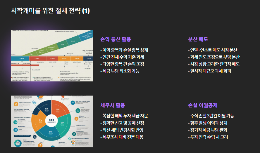 | 손익 통산 활용 | 손실 본 종목을 연말 이전 매도해 과세 줄이기 |