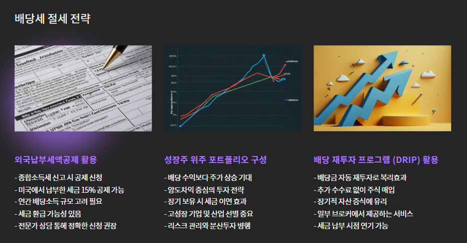 - 배당 수익보다 양도차익 중심 투자 시 세금 부담 줄일 수 있음